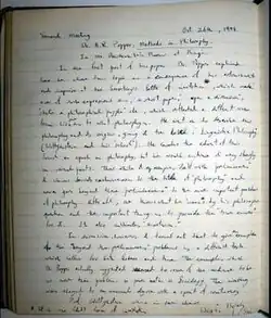 Mr Wittgenstein ... read a paper entitled "What is Philosophy?" The paper lasted only about 4 minutes, thus cutting the previous record established by Mr Tye by nearly two minutes. Philosophy was defined as all those primitive propositions which are assumed as true without proof by the various sciences. This defn. was much discussed but there was no general disposition to adopt it. The discussion was kept very well to the point, and the Chairman did not find it necessary to intervene much.[7]
