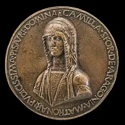 In 1475 Camilla married Costanzo I Sforza,[2] but they had no children and so he was succeeded on his death in 1483 by the eldest of his two illegitimate sons, Giovanni Sforza. Giovanni was then only aged 17 and so initially the lordship was ruled by Camilla as regent. She ruled from 19 July 1483 to October 1483.