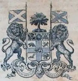 Appointed Secretary of the Canada Company in 1824 John Galt helped to obtain a charter for the company on 19 August 1826.[13] On that date, the formal structure of the Canada Company was put into place by the company's Court of Directors. John Galt, as secretary, had the first order of business. Tabling an abstract of the charter, Galt declared the name to be "The Canada Company" with directors and secretary as served on the Provisional Committee and listed in the charter.[16]