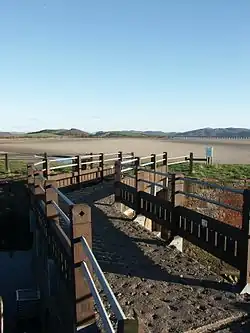 Canal Foot is best known for its massive GlaxoSmithKline Plant, located in the former North Lonsdale Ironworks which ceased production in 1938. Glaxo Smith bought the plant in 1947 and manufactures penicillin and streptomycin and other medicines.[2] Also of note is the Bay Horse Hotel and Restaurant, which was a staging post for coaches crossing Morecambe Bay during the 18th century.[3] It serves traditional Cumbrian cuisine.[4][5] It has won several awards, including being named "Cumbrian Inn of the Year" by The Good Hotel Guide in 2008[6] and "Lake District Hotel of the Year" by Lake District and Lancashire Life in 2000.[7] The point here is called Hammerside Point. Canal Foot is used by anglers, as the water nearby contains a good amount of flounders and some sea bass.[8][9]