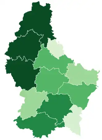 | Wiltz Wolz | Wiltz | North |   | 264.55 | 19,944 | 75.4 | 537 | 233 |
