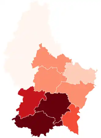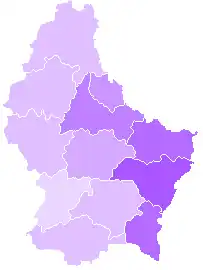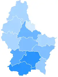Unlike in Switzerland and similarly to France, Luxembourgish cantons have no administrative structure of their own—rather, they are used to delimitate electoral constituencies and judicial districts.[1] Until 2015, they also served to delimitate Luxembourg's three districts.