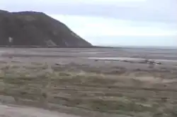 Cape San Pablo is an isolated mountain with a rounded shape. It is made of sedimentary rocks from the Cenozoic Era. The cape spreads across 1,200 metres at hide tide, but the distance decreases significantly at low tide. To the north, there is a bay called “Quemada” (English: Burned) together with another one much deeper bay named cove "San Pablo", which is delimited at the north by the cape "Ladrillero" and the "Champion rock" in the same area where the river "Ladrillero" flows into the sea. Cape San Pablo has another sea entrance to the south that exposes the seabed at low tide. This area contains a huge wreck, the "Desdemona", a cargo ship made in Germany. In this shallow bay, the San Pablo river flows into the sea. The southern limit of this area is called Gruesa point.[1] The climate is semi-humid, with an annual average temperature of about 6 °C, and annual rainfall (uniformly distributed) of about 350 mm. In the Papadakis classification, its climate is defined as “wet Patagonian”.[2] Strong winds occurs throughout the year, especially during the spring, blowing mainly from the west and south-west quadrants. The coast is usually cliffed but it is also surrounded by lower coastal areas which consist of sand, silt and abundant pebbles. Tidal differences can be remarkable.