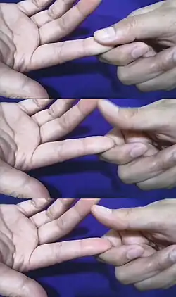 CRT can be measured by applying pressure to the pad of a finger or toe for 5–10 seconds.[6] It became popularized in the 1980s when Champion et al. proposed a CRT of less than 2 seconds be deemed normal and included CRT in the Trauma Score.[7] The value of 2 seconds for a normal CRT that was proposed by Dr Champion had been arbitrarily chosen by his nurse, and no evidence supporting that value has subsequently been found.[8] CRT has been shown to be influenced by ambient temperature, age, sex, and the anatomical testing and lighting conditions.[9][10] The most reliable and applicable site for CRT testing is the finger pulp (not at the fingernail), and the cut-off value for the normal CRT should be 3 seconds, not 2 seconds.[2]