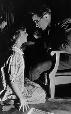 Lombard was eager to win an Academy Award, and selected her next project with the expectation that it would bring her the trophy.[114] Vigil in the Night (1940), directed by George Stevens, featured Lombard as a nurse who faces a series of personal difficulties. Although the performance was praised, she did not get her nomination, as the sombre mood of the picture turned audiences away and box-office returns were poor.[115] Despite the realization that she was best suited to comedies,[116] Lombard completed the drama They Knew What They Wanted (1940), co-starring Charles Laughton, which was mildly successful,[117] and which did receive an Oscar nomination—for her co-star, William Gargan, for Best Supporting Actor.