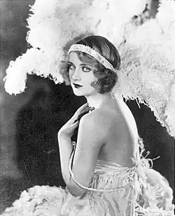 Most of Lombard's appearances with Fox were bit parts[13] in low-budget Westerns and adventure films. She later said, "All I had to do was simper prettily at the hero and scream with terror when he battled with the villain."[16] However, she enjoyed other aspects of film work such as photo shoots, costume fittings, and socializing with actors on the studio set. Lombard embraced the flapper lifestyle and became a regular at the Cocoanut Grove nightclub, where she won several Charleston dance competitions.[17]