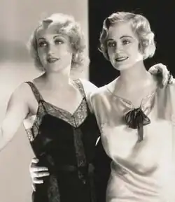 In March 1925, Lombard landed a leading role in the drama Marriage in Transit with Edmund Lowe. A reviewer for Motion Picture News wrote that Lombard displayed "good poise and considerable charm".[18] However, the studio heads were unconvinced that Lombard was leading-lady material, and her contract was not renewed.[19] Gehring has suggested a facial scar resulting from a car crash was a factor in this decision, but that incident occurred nearly two years later on September 9, 1927.[20] According to historian Olympia Kiriakou, on the night of the crash, Lombard was on a date with a man named Harry Cooper. On Santa Monica Boulevard, Cooper hit another car; the windshield shattered and shards of glass cut "Lombard's face from her nose and across her left cheek to her eye."[21] Lombard underwent reconstructive surgery and faced a long recovery period. For the remainder of her career, Lombard learned to hide the mark with makeup and careful lighting.[22] At the time of the crash, Lombard was already under contract with Mack Sennett. In October 1927, Lombard and her mother Bess sued Cooper for $35,000 in damages, citing in the lawsuit that "where she formerly was able to earn a salary of $300 monthly as a Sennett girl, she is now unable to obtain employment of any kind." The lawsuit was settled out of court, and Lombard received $3,000.[23] Although Lombard feared that the incident would end her career, Sennett pledged to help her recover. He afforded her "lucrative film roles and ample publicity", including the nickname "Carole of the Curves". Kiriakou explains, "the nickname simultaneously drew audiences' focus away from her facial scars and worked harmoniously with the physicality and female sensuality that were emblematic of Lombard's performances" in Sennett's films.[23]