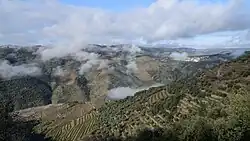 Carrazeda de Ansiães has a lot of its territory integrated within the Alto Douro, characterized by boxed-in valleys along the Douro and Tua Rivers, with steep inclines known for its wine-producing vineyards characteristic of Porto.[4] The lands are covered in olive, almonds and fig orchards, in addition to peaches, wheat, pears, lands for the raising of dairy- and beef-cattle, sheep and honey production.[4]