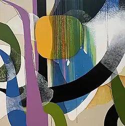 Moyer transferred to Pratt Institute and graduated with her BFA in painting in 1985.[6] While at Pratt, Moyer studied under artists Rudolf Baranik, Amy and Jenny Snider, Phoebe Helman, Jack Sonnenberg, and Ernest Benkert.[7] She largely produced abstract paintings during this time, and was inspired by painters such as Lee Krasner, Bill Jensen, Elizabeth Murray, and Katherine Porter.[7][8] She also worked as an intern for Heresies: A Feminist Publication on Art and Politics as an undergraduate.[8][9]