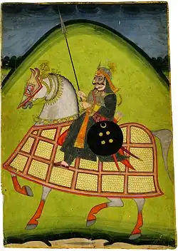 Indian literature contains numerous references to the mounted warriors of the Central Asian horse nomads, notably the Sakas, Kambojas, Yavanas, Pahlavas and Paradas. Numerous Puranic texts refer to a conflict in ancient India (16th century BC)[44] in which the horsemen of five nations, called the "Five Hordes" (pañca.ganan) or Kṣatriya hordes (Kṣatriya ganah), attacked and captured the state of Ayudhya by dethroning its Vedic King Bahu[45]