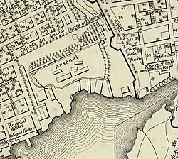 The site of the railway station is located where the former Spanish Royal Shipyard of Havana was southeast of the Campo de Marte, and immediately outside the southernmost gate of the city.