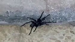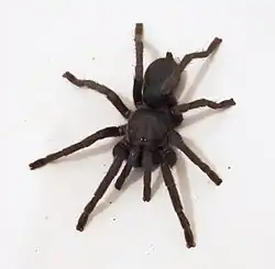 The body length is approximately 2.5 cm for adult males and 5 cm or larger for females.[5] It is one of the largest spiders in Israel.[2] The color varies between black, gray and brown dark; they tend to be paler in the cooler more forested regions of their range and darker in the southern more arid areas.[4]