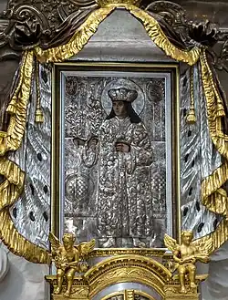 The Chapel of Saint Casimir is a Roman Catholic chapel, that is dedicated to Saint Casimir, located in the Vilnius Cathedral, in Vilnius, Lithuania. The chapel was built in 1623–36 after Prince Casimir (1458–1484) was canonized as saint. It was built and decorated in the Baroque style by Italian sculptors and architects commissioned by Sigismund III Vasa, King of Poland and Grand Duke of Lithuania.[2] The centerpiece of the chapel is a faux marble altar which holds the silver sarcophagus with Casimir's remains and the painting Three-Handed St. Casimir.
