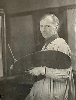 From 1919 to 1923, Knight studied at the Brighton College of Arts. While at the school, he was influenced by the works of Louis Ginnett and John Leopold Denman,[4] both of whom taught him and were later to become colleagues.[3] In 1923, he attained a diploma in art teaching from the college,[5] and won a scholarship to the Royal Academy of Arts. There, he was inspired by Charles Sims, who taught him his technique of painting in oil over a tempera base, and by Walter Sickert, George Clausen[4][6] and Glyn Philpot, all of whom taught him. He was particularly influenced by the technique of John Sell Cotman,[2] which influenced several of Knight's early works.[7] In 1922, he was made a member of the Brighton Arts Club[4] along with his father; they put on an exhibition of their paintings in that year.[3] Knight's first solo exhibition was staged two years later at Hove Library, where he exhibited 52 paintings.[3]