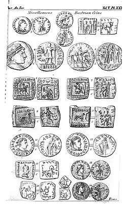 - (1834). "Memoir on the ancient coins found at Beghram, in the Kohistan of Kabul". Journal of the Asiatic Society of Bengal. 3 (28): 153–175.