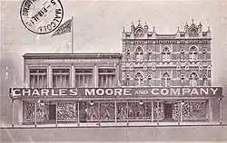 He opened a store "Moore and Gobbett" in Hay Street, Perth, Western Australia in 1895, and bought the "Coliseum" furniture shop, also on Hay Street, but sold it in 1902.[7] By 1899 the shop was advertised as Charles Moore and Co. Moore is particularly remembered in Perth for his advocacy for a children's hospital (founding in 1897 the Children's Hospital Movement)[8] and its generous support.[9]