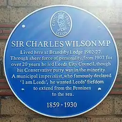Wilson was a councillor and alderman on Leeds City Council from 1890 to 1928, and council leader for a period, and also an accountant, Justice of the Peace and Freeman of the City.[3]