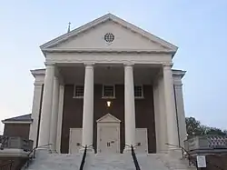 The first Catholic church in Charlottesville was the Church of the Paraclete, built in 1880 and erected as a parish in 1896. In 1906 the church building was renovated and the parish was renamed to Holy Comforter. A second parish was erected for the growing Catholic population in 1976 called the Church of the Incarnation.[41] In 1967 a Dominican-run parish for Catholic students at the University of Virginia was dedicated (replacing a Newman Center begun in 1943), and named St. Thomas Aquinas University Parish.[42] The first Mass of record in Charlottesville was celebrated in the parlor of F. M. Paoli's residence, presumably on Random Row, now West Main Street. Services were held for about 12 years after that in the Town Hall. The presiders were priests who came from St. Francis Assisi Church in Staunton and then traveled on to other missions in the area.[43]