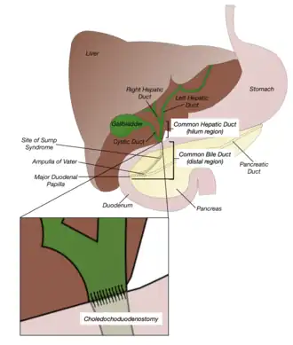 - ^ a b Abraham H, Thomas S, Srivastava A (2017-08-04). "Sump Syndrome: A Rare Long-Term Complication of Choledochoduodenostomy". Case Reports in Gastroenterology. 11 (2): 428–433. doi:10.1159/000477335. PMC 5624249. PMID 29033759.