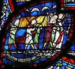 The Absolution became common in the second half of the eleventh century. It involves laying a form of absolution upon the breast of the deceased. This is enjoined in the monastic constitutions of Archbishop Lanfranc.[12] Occasionally, a leaden cross etched with a few words was used for this purpose. Many such crosses have been recovered in opening tombs belonging to this period.[3]