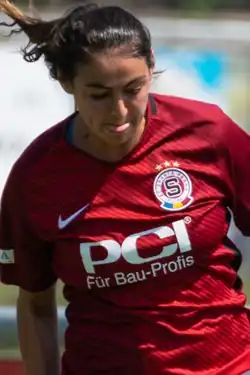 Christina Marie Burkenroad Sandoval (born 12 July 1993) is a professional footballer who plays as a forward for Liga MX Femenil club CF Monterrey. In January 2016, she was drafted by the Orlando Pride in the National Women's Soccer League.[6][7] Born and raised in the United States to an American father and a Mexican mother, she plays for the Mexico women's national team.[5][8][9][10]