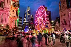 ![]() Christmas Village in Philadelphia in LOVE Park facing City Hall | |