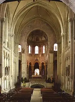 The Church of Sainte-Radegonde (French: Église de Sainte-Radegonde) is a medieval Roman Catholic church in Poitiers, France, dating from the 6th century. It takes its name from the Frankish queen and nun, Radegund, who was buried in the church. Radegund was considered a saint and the church became a place of pilgrimage by those devoted to her heavenly intercession. The current church, constructed from the 11th to 12th centuries, was built in a combination of Romanesque and Angevin Gothic architectural styles.[2]
