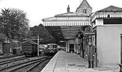 On 1 July 1924 the station was renamed Cirencester Town.[3] A fire broke out on 7 April 1948 in the packing office when a stove pipe overheated and ignited the ceiling joists. The damage was confined to ceiling timbers.[5] In 1956 some additions to the station were made by Howard Cavanagh, architect to the Western Region of British Railways. The ticket hall to the left of the main building was rebuilt using Bath stone and oak window frames to harmonise with the original.[6]