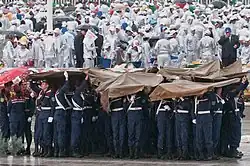 The Nigeria Security and Civil Defence Corps "is a para-military agency of the Government of the Federal Republic of Nigeria that is commissioned in 2003, to provide measures against threat and any form of attack or disaster against the nation and its citizenry".[2]