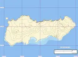 It has an area of 19.80 square kilometres (7.64 sq mi)[1] and three prominent peaks. The westernmost and tallest peak, Monte Gallegos, is 335 metres (1,099 ft) high. The central peak is called Monte de la Marina, 280 metres (920 ft), and the eastern peak Pico de la Tienda 292 metres (958 ft). The coasts are backed by perpendicular cliffs, 24 to 183 metres (79 to 600 ft) high, with the exception of the middle part of the southern coast in the vicinity of Bahía Azufre (Sulphur Bay), which is the location of a small military garrison with a contingent of 9 soldiers.