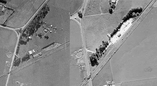 The level crossing, on what is now State Highway 1,[16] was the subject of a court case about a car collision with a train as early as 1913.[17] The defendant S. J. Gibbons was awarded the amount of £15 as claimed in a precedent-setting case.[18][19] Trees were felled in 1916 to improve sight-lines for motorists.[20]