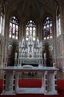The Boys' Chapel has an elaborate reredos, a large pipe organ in the gallery, and a sequence of Stations of the Cross painted by Sean Keating. School tradition has it that the portrait of Pontius Pilate in the 12th station was based on the school rector, who had refused to pay the artist his asking price.