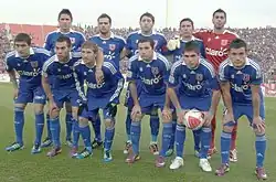 Founded on 24 May 1927, Universidad de Chile is one of the most successful and popular football clubs in Chile, having won the league title 18 times.[2] In the last 10 years, the team has been crowned champion six times, including their undefeated run to the 2011 Copa Sudamericana title. The team has been associated with the colour blue throughout its history, blue is present on the logo, which was officially adopted in 1943. The club rivalries are with Colo-Colo and Universidad Católica, with whom they regularly contest the Santiago derbies known as Superclásicos.