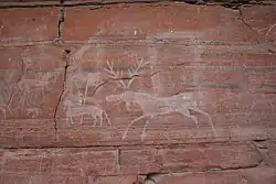 The central element of the coat of arms is an image of an ancient rider with a banner. The image was one of the rock paintings found near the village of Shishkino in 1745 by members of the Great Northern Expedition of the Russian Academy of Sciences. The painting was believed to be made by Kurykans. Scientists believe that the rider depicted in the painting are the leaders of the clans and tribes of the Kurykans. The red banner in the image symbolized the unity and the strength of the Kurykan tribes.[3]