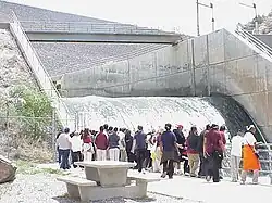 Construction began in 1965. Impoundment of water in Cochiti Lake began in 1973.[11] Archaeological surveys were made prior to filling of the lake.[12] The filling of the lake inundated the Cochiti Diversion Dam which had previously been used for irrigation purposes, and which had been rehabilitated by the United States Bureau of Reclamation in 1958 as part of the Middle Rio Grande Project.[13] The new dam replaced this functionality.