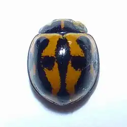 The variable ladybird gets its name from the black markings on the adult elytra, that vary from one individual to another.[6]