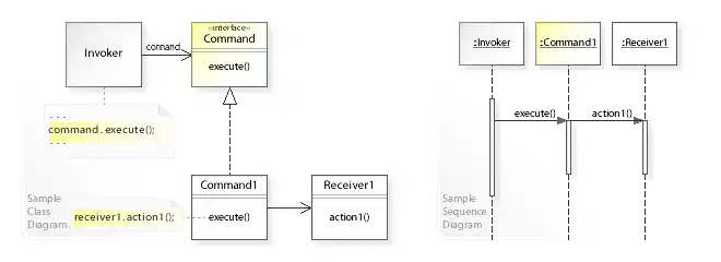 , method, function: the actual code that does the copying, pasting, moving, etc. In some implementations the handler code is part of the command/action object. In other implementations the code is part of the Receiver/Target Object, and in yet other implementations the handler code is kept separate from the other objects. - Command Manager, Undo Manager, Scheduler, Queue, Dispatcher, Invoker: an object that puts command/event objects on an undo stack or redo stack, or that holds on to command/event objects until other objects are ready to act on them, or that routes the command/event objects to the appropriate receiver/target object or handler code.