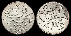 - ^ Obverse: bust of King William I; reverse: Dutch coat of arms between value indication of "1" and "G"; year 1821 above value-indication.