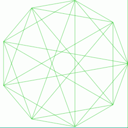 Analogously, a complex 1-polytope exists as a set of p vertex points in the complex line . These may be represented as a set of points in an Argand diagram (x,y)=x+iy. A regular complex 1-dimensional polytope p{} has p (p ≥ 2) vertex points arranged to form a convex regular polygon {p} in the Argand plane.[5]