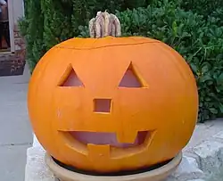 The Connecticut field pumpkin is considered to be the standard general-purpose Halloween pumpkin. It is the variety most often selected for carving jack-o'-lanterns, and is widely considered to be the most popular Halloween pumpkin.[7][19][20] Unlike many pumpkin varieties, the Connecticut field pumpkin grows upright. This gives them flat rather than rounded bottoms, which some commentators believe improves their usability for carving and displaying jack-o'-lanterns.[21]