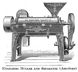 The hullers were Engelberg hullers manufactured in Germany. Before the use of electric motors, the hullers were driven by Corliss 150 hp steam engines powered from Babcock & Wilcox boilers. An extensive network of belts and pulleys was used to transfer the power from the engines to the hullers. Electric motors were introduced in 1951, replacing the steam engines.
