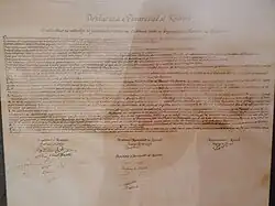 The constitution was signed on 7 April 2008 at 13:00 local time at the national library in Pristina.[2] The constitution was ratified on 9 April and came to effect on 15 June 2008.[3][4]