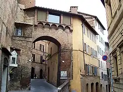 At the houses of the Fathers of the Rose the Siena Academy of Sciences and the Museum of the History of Science have been located since 1816. The convent, which was originally the home of the Catholic monastic congregation of the Camaldolese Friars of the Rose, has been converted into a university campus. The Porta Tufi (1325–1326) is one of the entrances to the historic center of Siena: it is attributed to the Sienese architect and sculptor Agnolo di Ventura.[2]