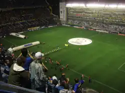 The clashes for the Copa Aldao between the champions of Argentina and Uruguay kindled the idea of continental competition in the 1930s.[1] In 1948, the South American Championship of Champions (Spanish: Campeonato Sudamericano de Campeones), the most direct precursor to the Copa Libertadores, was played and organized by the Chilean club Colo-Colo after years of planning and organization.[1] Held in Santiago, it brought together the champions of each nation's top national leagues.[1] The tournament was won by Vasco da Gama of Brazil.[1][4][5] The 1948 South American tournament began, in continent-wide reach, the "champions cup" model, resulting in the creation of the European Cup in 1955, as confirmed by Jacques Ferran (one of the "founding fathers" of the European Cup), in a 2015 interview with a Brazilian TV sports programme.[6]