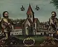 - Kirchberg-Brandenburg: Southwest of this is the rule of Kirchberg-Brandenburg. Their center of power was in Dietenheim, which received city rights as early as 1280. From their family castle (probably Regglisweiler Castle) only overbuilt ditches are preserved. The branch seem to have been the most politically active line; representatives of this family appear on royal charters several times. The first documentary evidence of a Kirchberg-Brandenburg (Count Otto) dates to 2 February 1239. According to the chronicle of the Imperial Abbey of Rot (Roth) on the Rot, the line could have split off even earlier. After the serious wounding of Count Hartmann VI in the Battle of Oberndorf (17 April 1298) the Brandenburg estates were confiscated by Albert I of Germany and passed on without regard to the inheritance claims of the surviving Kirchbergs, first to the knights of the Ellerbach family. The last of this branch was abbot Conrad, from the monastery of Allerheiligen/Schaffhausen, who died on 12 March 1322 (1323).