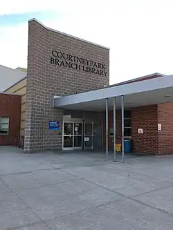 Courtneypark Library is a library branch under the Mississauga Library System located in Meadowvalle Village.[3] The library was established in late 2004 to respond to the needs of the large and growing Courtneypark community of 75,000 residents.[4] The Courtneypark Library serves as both a community library with resources and programs geared to the everyday requirements of all ages of users, and a school library for St. Marcellinus Secondary School.[5][1] This library is a shared facility between the City of Mississauga and the Dufferin-Peel Catholic District School Board.[6]