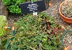 Crassula picturata is a species of plant in the family Crassulaceae, native to Cape Province in South Africa. It is a stemless plant with triangular, dark green leaves measuring approximately 10–12 cm long by 1 cm wide.