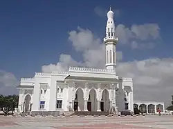 With very few exceptions, Somalis are entirely Muslims, the majority belonging to the Sunni branch of Islam and the Shafi‘i school of Islamic jurisprudence.[16][17] There are two theories about when Somalis began adopting Islam.[18] One states that the religion entered the region very early on, as a group of persecuted Muslims had, at Prophet Muhummad's urging, sought refuge across the Red Sea in the Horn of Africa. Islam may thus have been introduced into Somalia well before the faith even took root in its place of origin.[18] An alternate theory states that Islam was brought to the coastal settlements of Somalia between the 7th and the 10th century by seafaring Arab and Persian merchants.[19][18] Somali Sufi religious orders (tariqa) – the Qadiriyya, the Ahmadiya and the Salihiyya – in the form of Muslim brotherhoods have played a major role in Somali Islam and the modern era history of Somalia.[18][20][21]