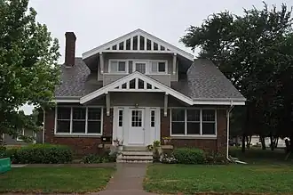 architecturally significant as a well-preserved local example of late Craftsman residential design. In South Dakota as well as elsewhere in the United States, residential architecture during the early twentieth century was heavily influenced by the Craftsman building form, an indigenous American style popularized through numerous pattern books and popular publications. In many areas of the country, simple variants of the Craftsman form saw near-universal use in working-class home construction during the 1910s and 1920s. Larger, high-style examples were less common, but still saw frequent use in many areas. Gettysburg generally followed this national design trend, and a number of small and mid-sized Craftsman homes remain in the community. The Curran house is a fine local example of the form, larger than most and with a high level of design detail. It remains today strongly reflective of the period in which it was built.[2]