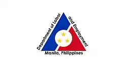 The Department of Labor and Employment (DOLE; Filipino: Kagawaran ng Paggawa at Empleo)[3] is the executive department of the Philippine government responsible for formulating policies, implementing programs and services, and serving as the policy-coordinating arm of the executive branch in the field of labor and employment. It is tasked with the enforcement of the provisions of the Labor Code.[4]